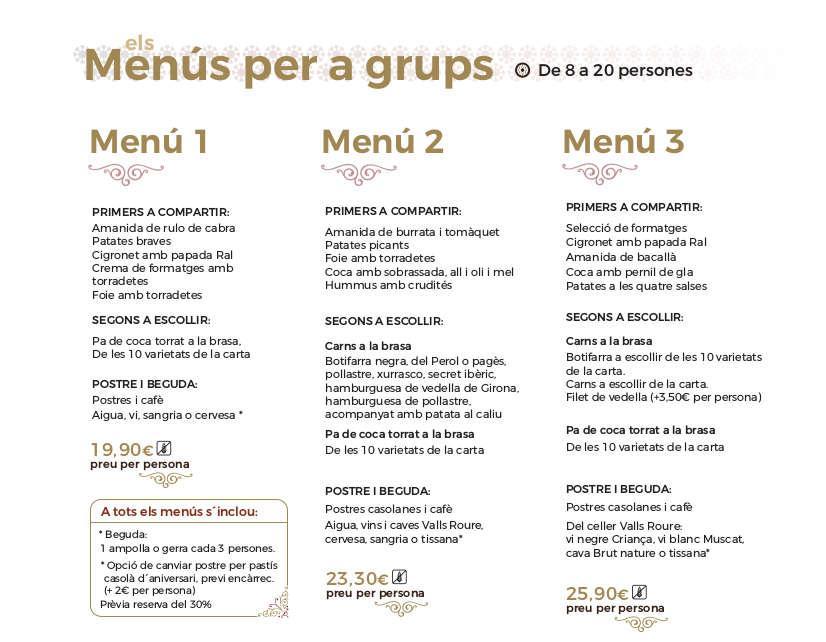Per aquestes festes ha preparat menús personalitzats per a grups a partir de 25€. Amb una sala del restaurant privada a partir de 15 persones. Disponibilitat i reserves 673.200.835.